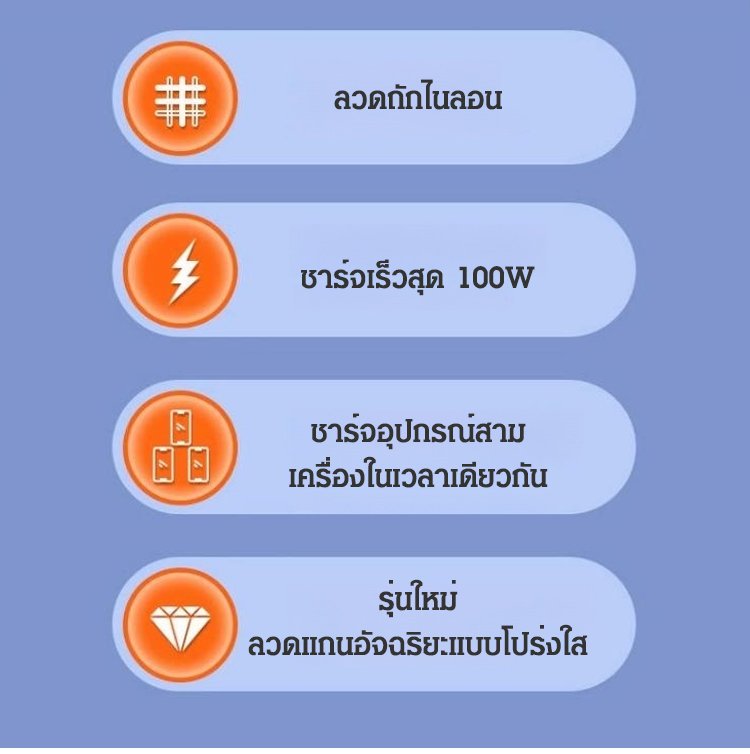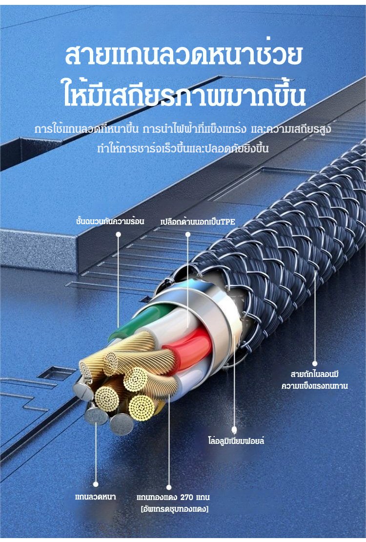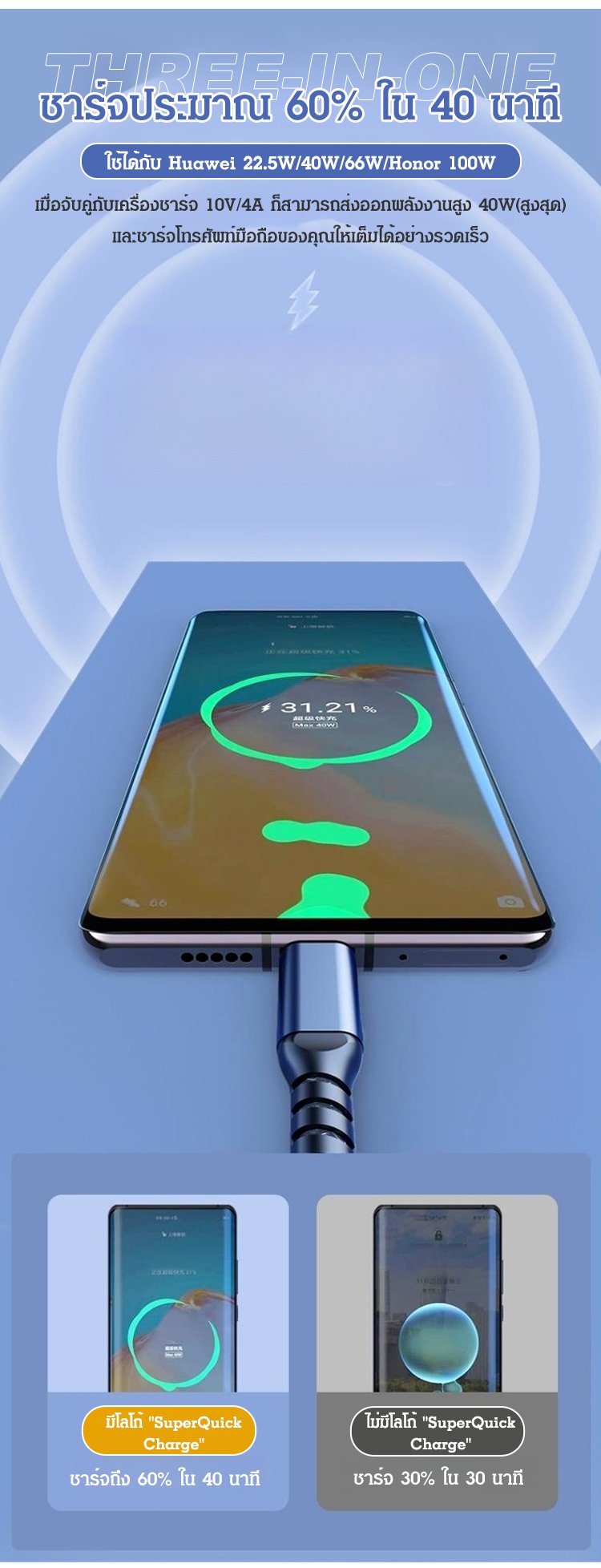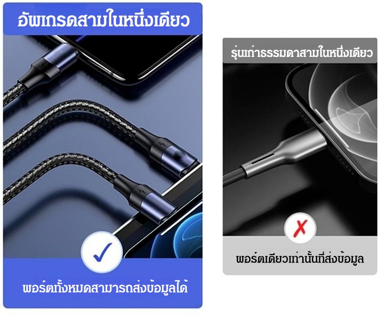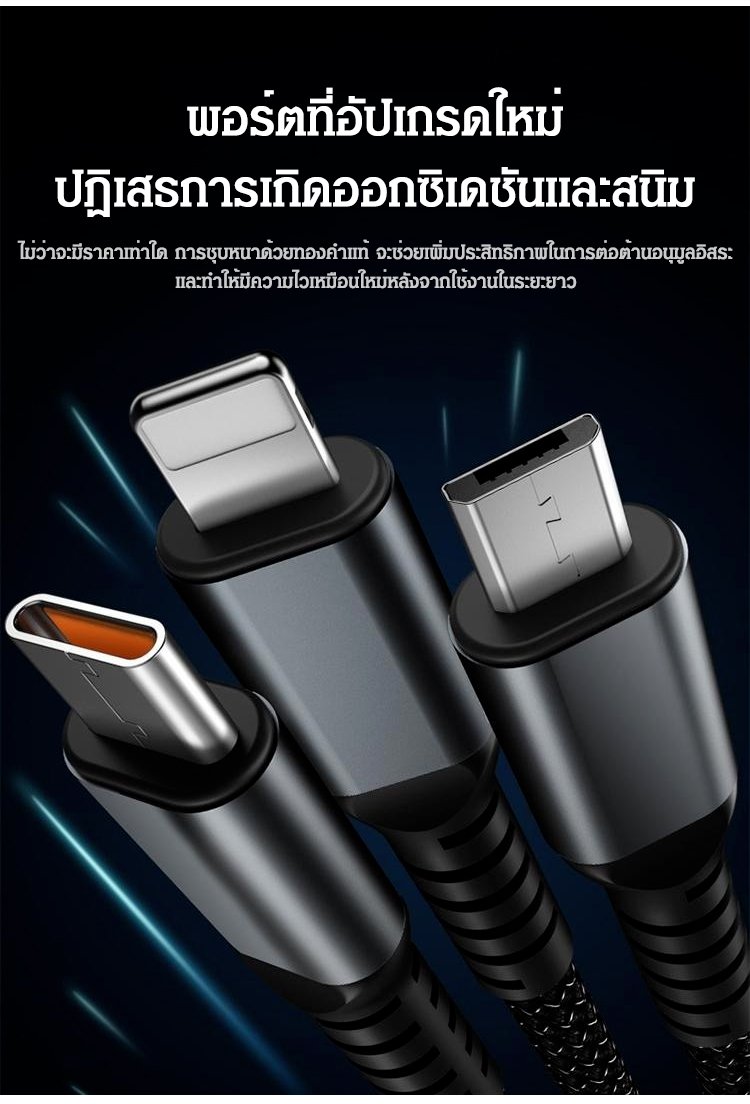 สายเคเบิลสามหัวในหนึ่งเดียวที่ชาร์จเร็ว เรืองแสง หัวสีใส